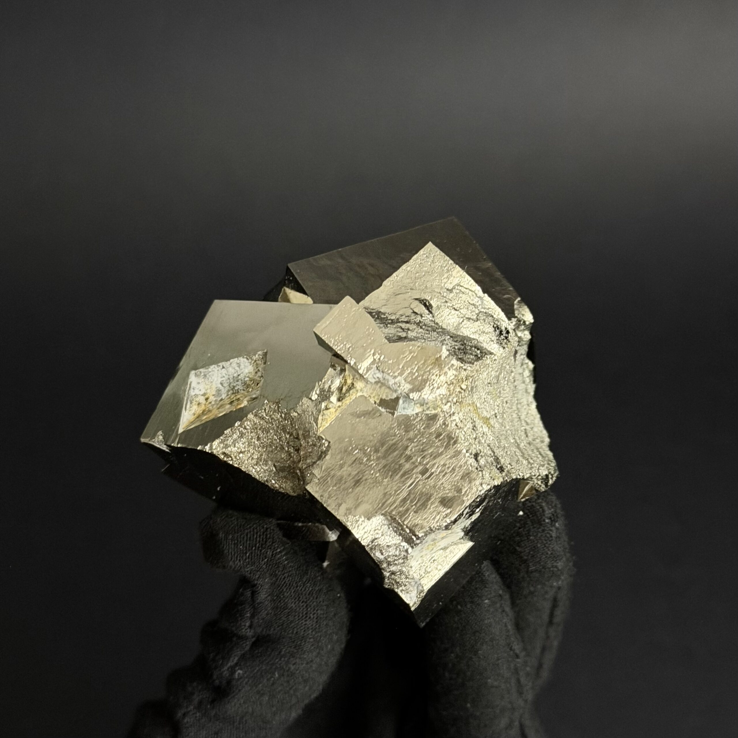 Pyrite specimen features several intergrown crystal cubes, naturally connected in a fascinating intertwining pattern.
