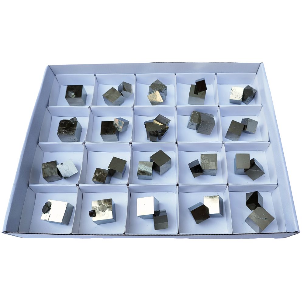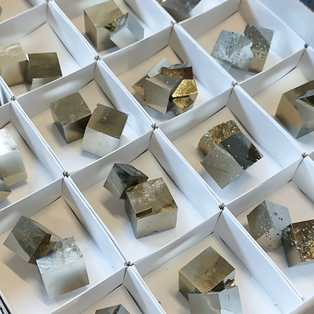 Pyrite clusters are composed of multiple well-formed cubic crystals growing together in a harmonious and aesthetically pleasing arrangement. These groupings are known for their metallic luster and characteristic golden color, reminiscent of gold. The repetitive crystal structure reflects the symmetry of the cubic system to which pyrite (FeS₂) belongs—a sulfide mineral widely distributed in nature. These formations are highly valued for both their beauty and crystallographic interest, as they display the typical geometry of the mineral in complex and visually striking compositions.