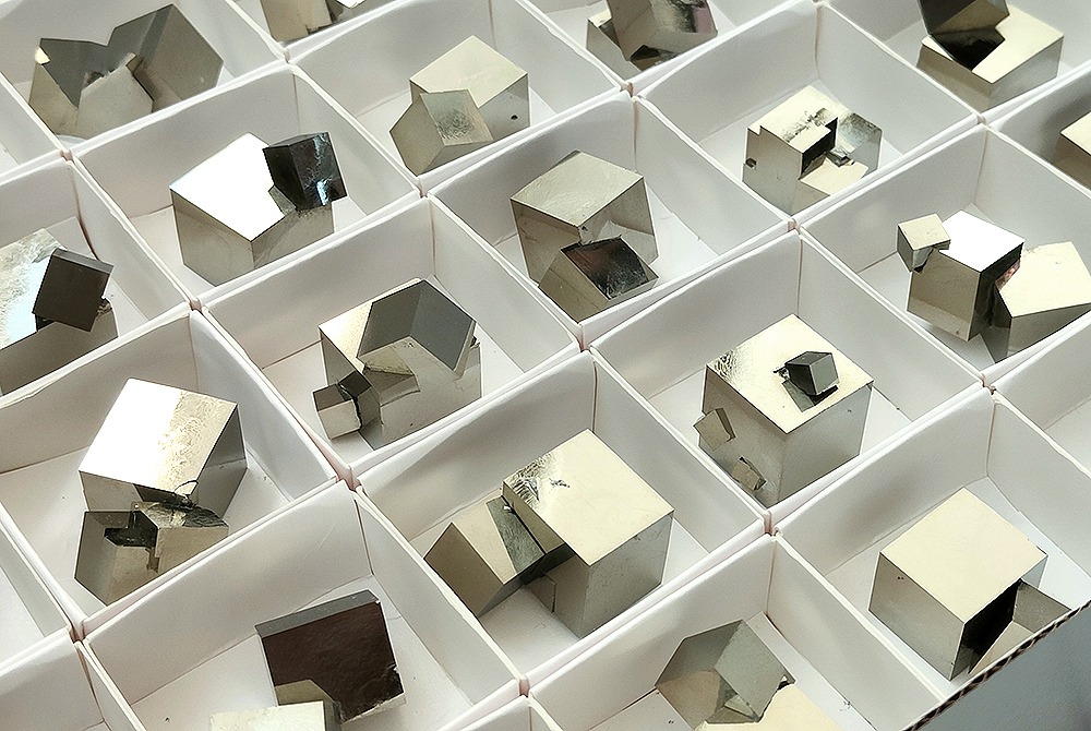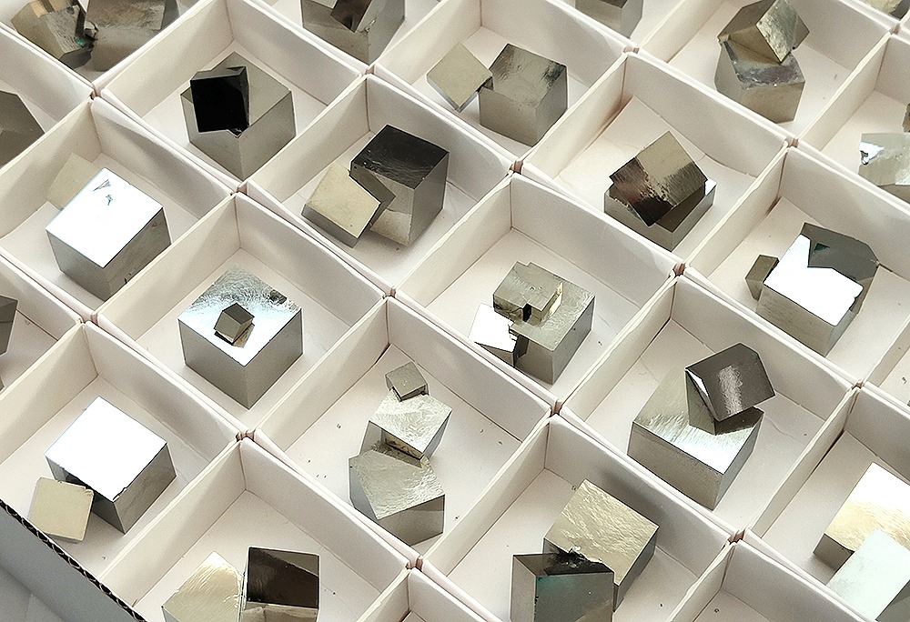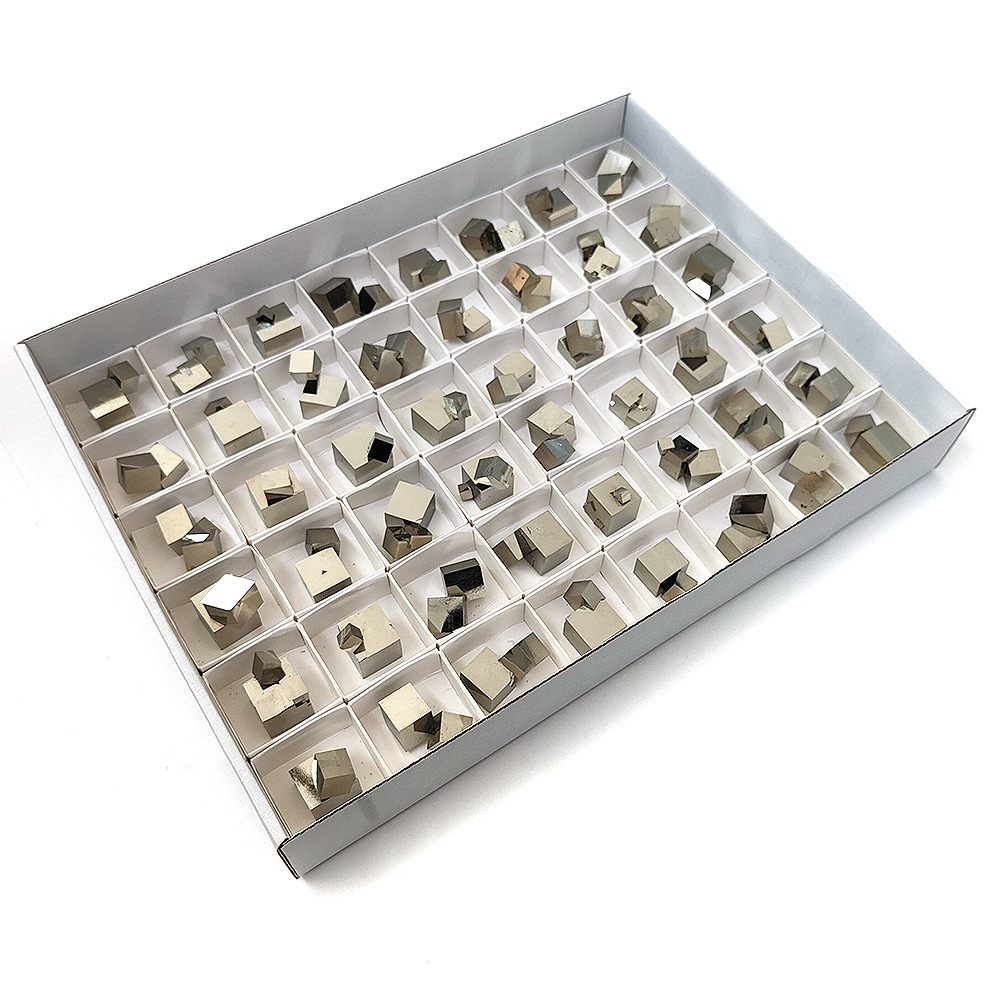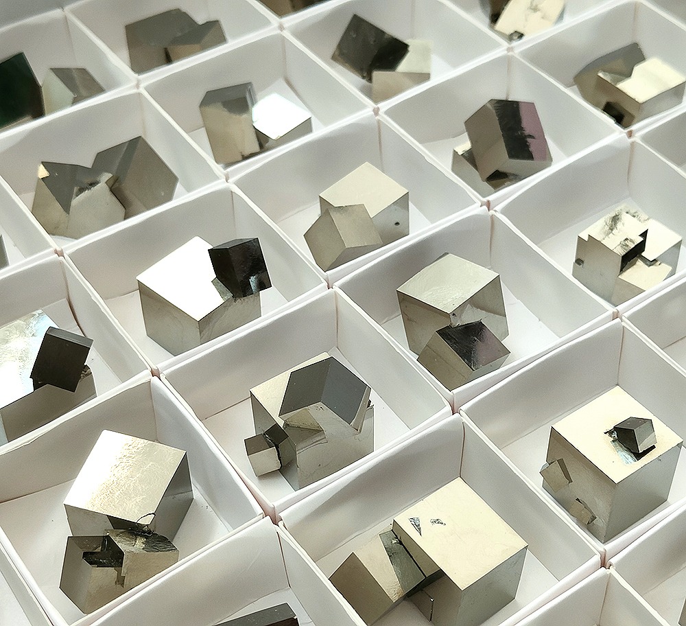 Pyrite Clusters in 4×4 cm boxes.