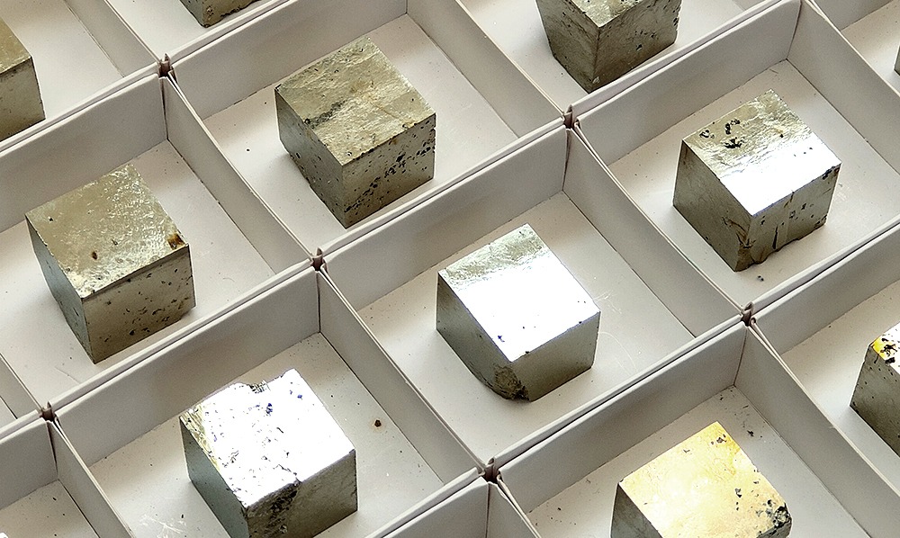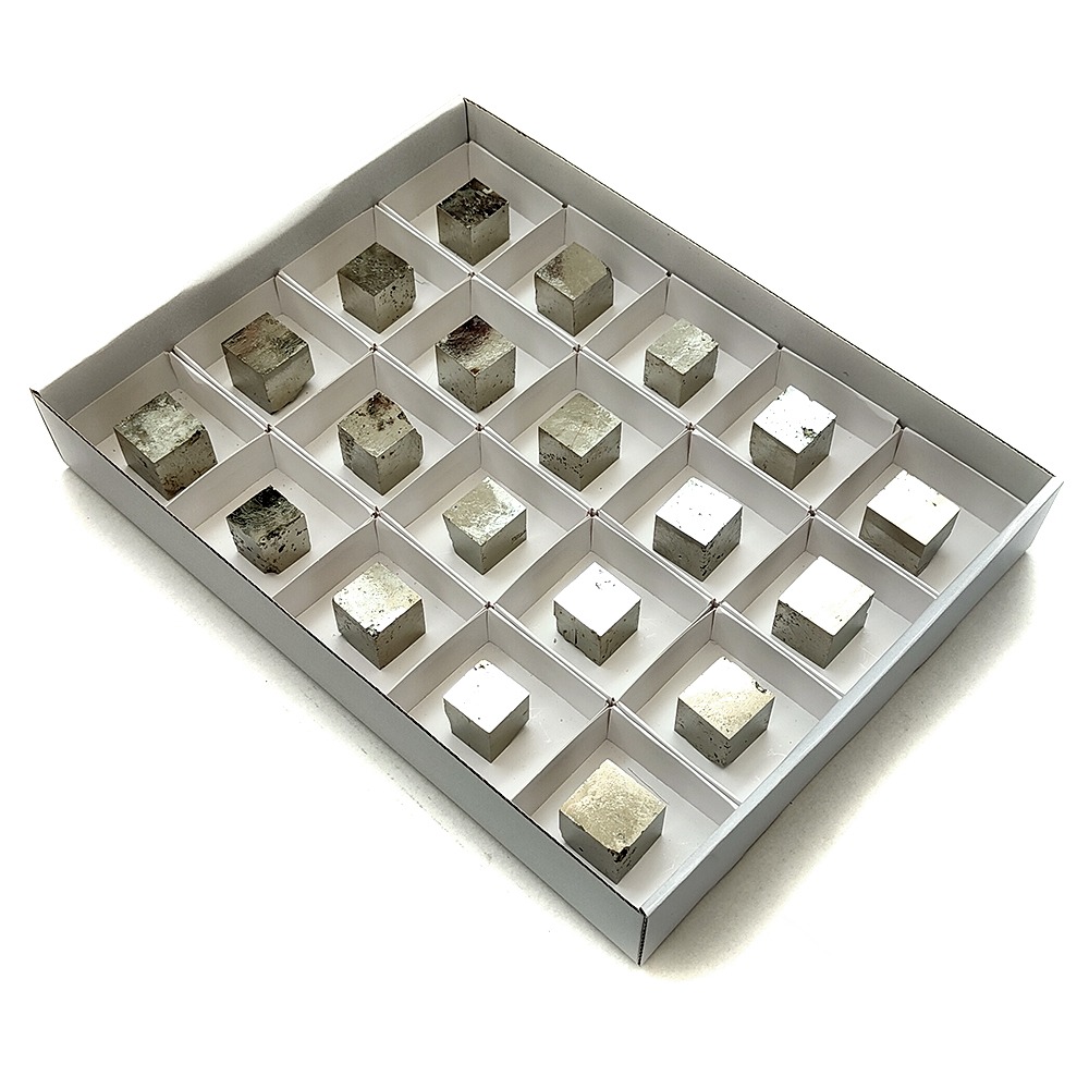 Second Quality Pyrite Cubes in 6×6 cm boxes.