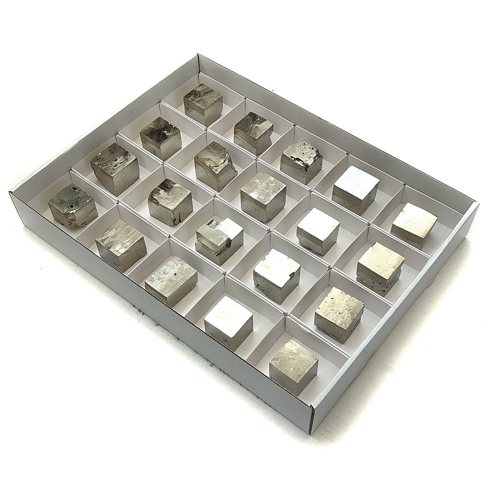 Second Quality Pyrite Cubes in 6×6 cm boxes.