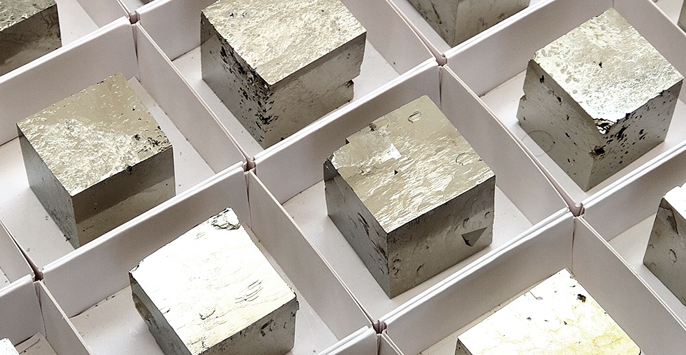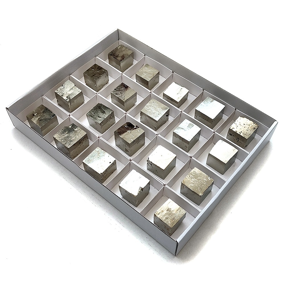 Second Quality Pyrite Cubes in 6×6 cm boxes.