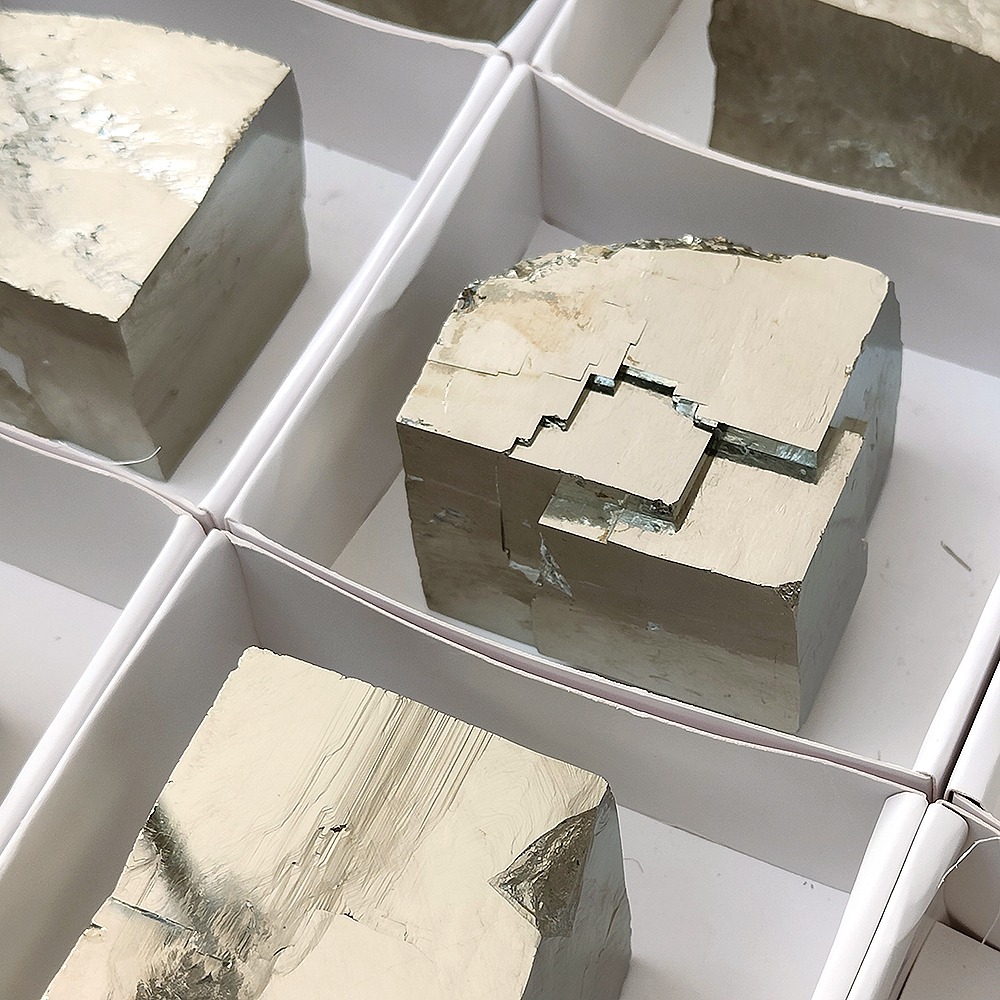 Second Quality Pyrite Cubes in 8×9 cm boxes.