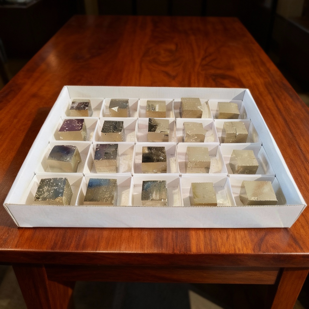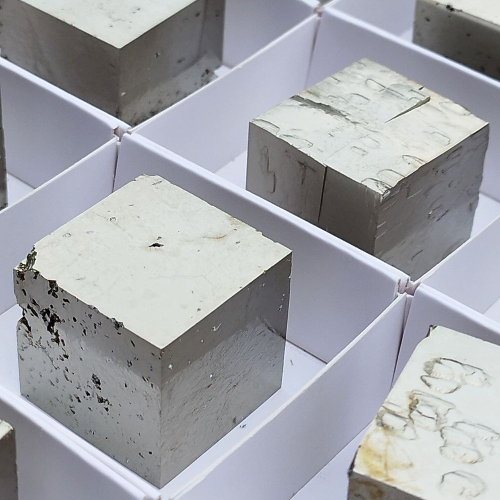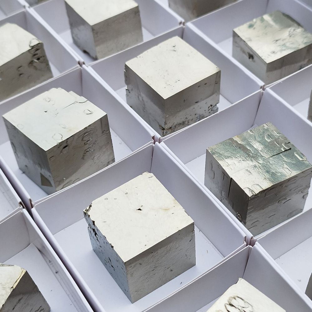 Second Quality Pyrite Cubes in 6×6 cm boxes.