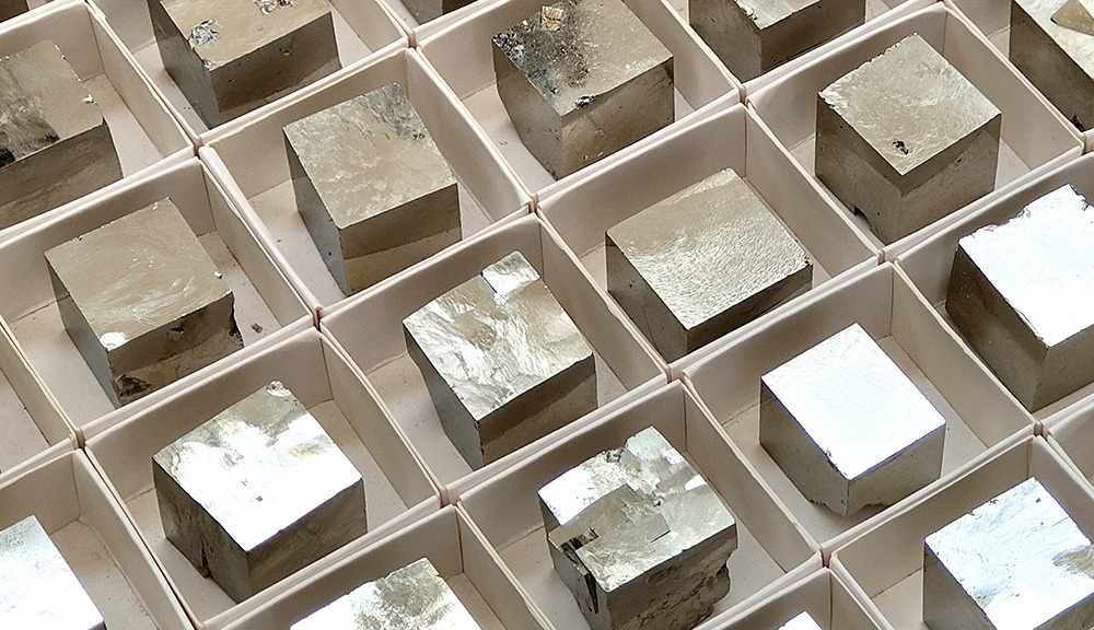 Second Quality Pyrite Cubes in 4×4 cm boxes.