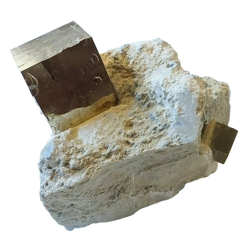 The Pyrite in Matrix offers you shiny pyrite crystals embedded in its original rock. It’s a key piece for any collection, showing how pyrite forms in nature.