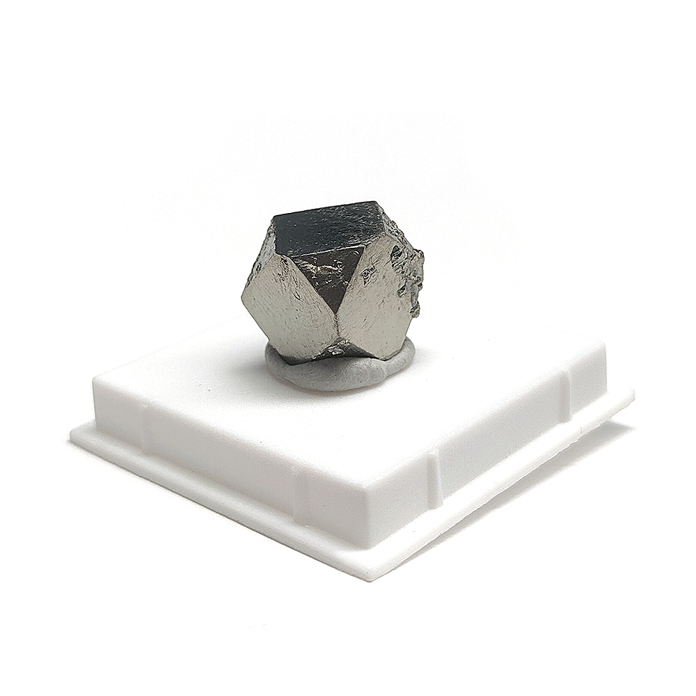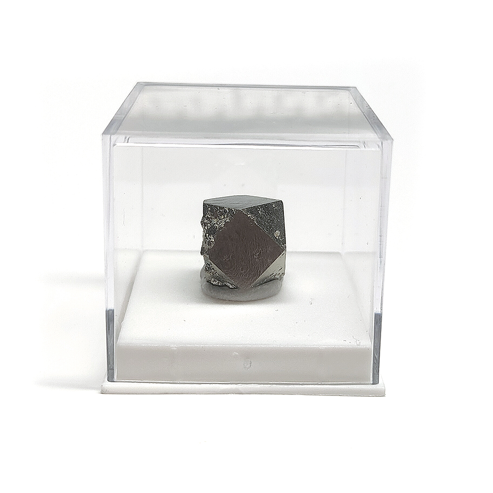Ejemplar de Pirita Cubo Octaedro en urna transparente de 4x4cm.