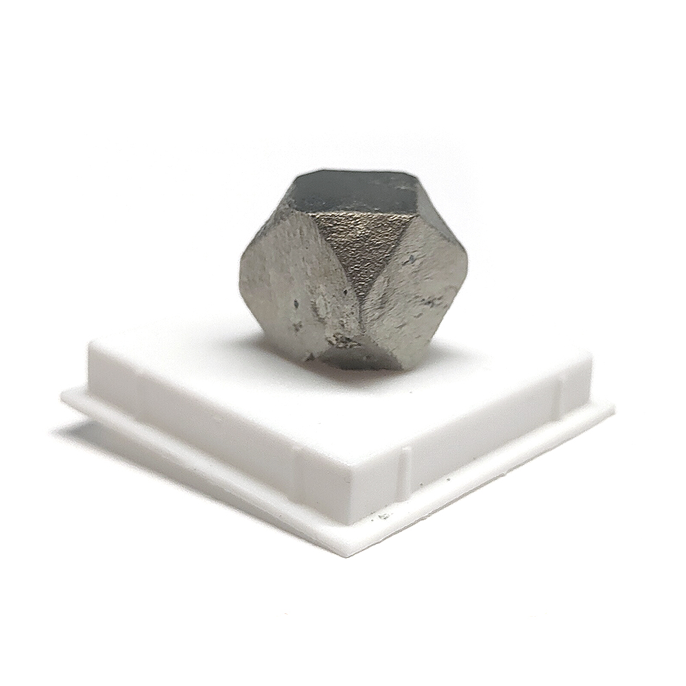 Ejemplar de Pirita Cubo Octaedro en urna transparente de 4x4cm.