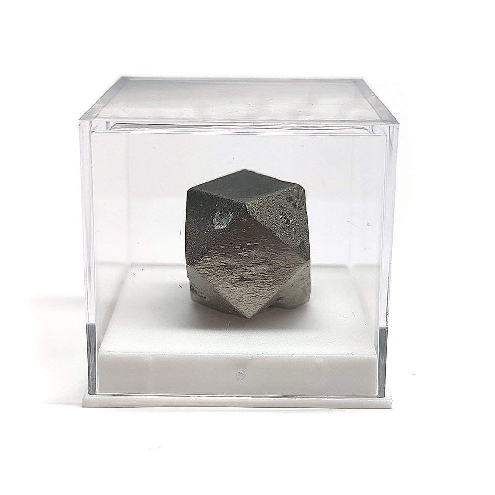 Ejemplar de Pirita Cubo Octaedro en urna transparente de 4x4cm.