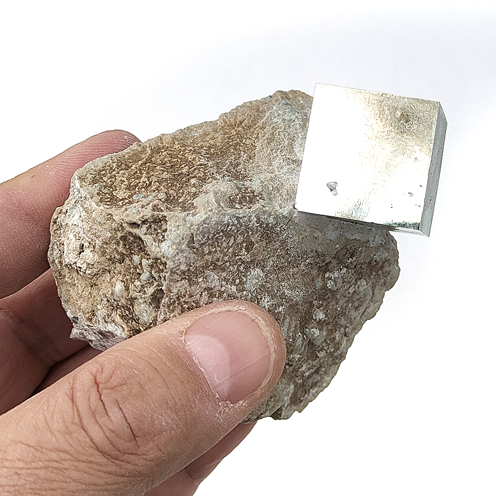 La Pirita en Matriz te ofrece cristales brillantes de pirita incrustados en su roca original. Es una pieza clave para cualquier colección, mostrando cómo la pirita se forma en la naturaleza.