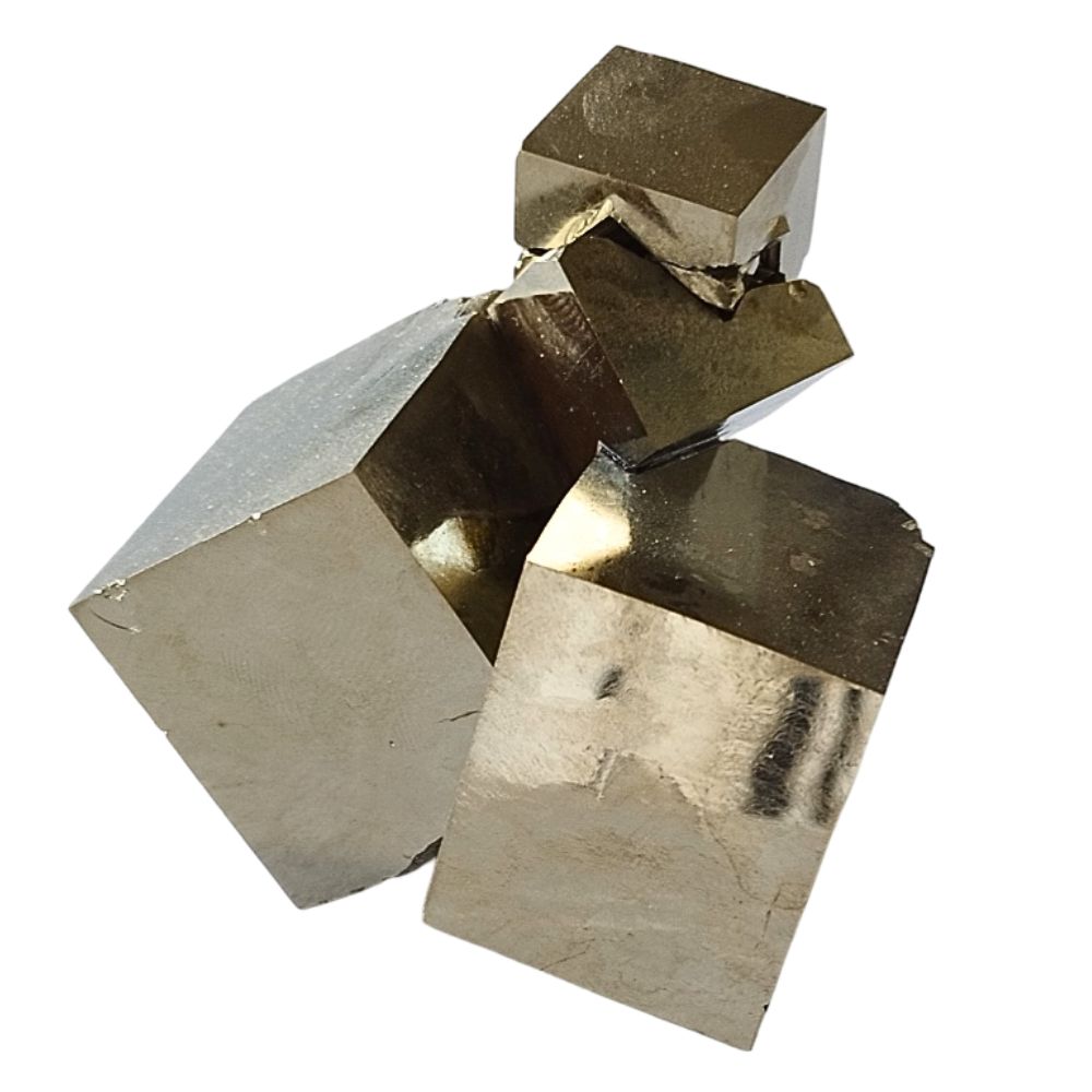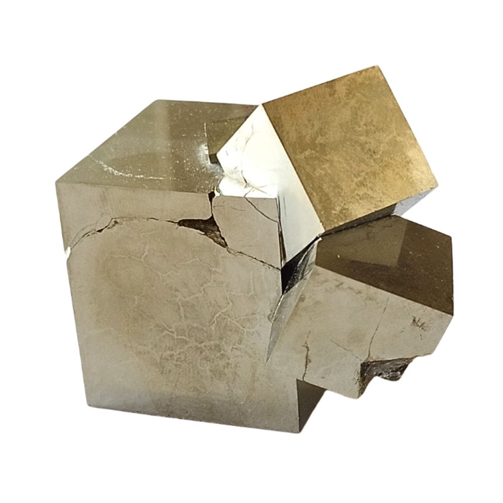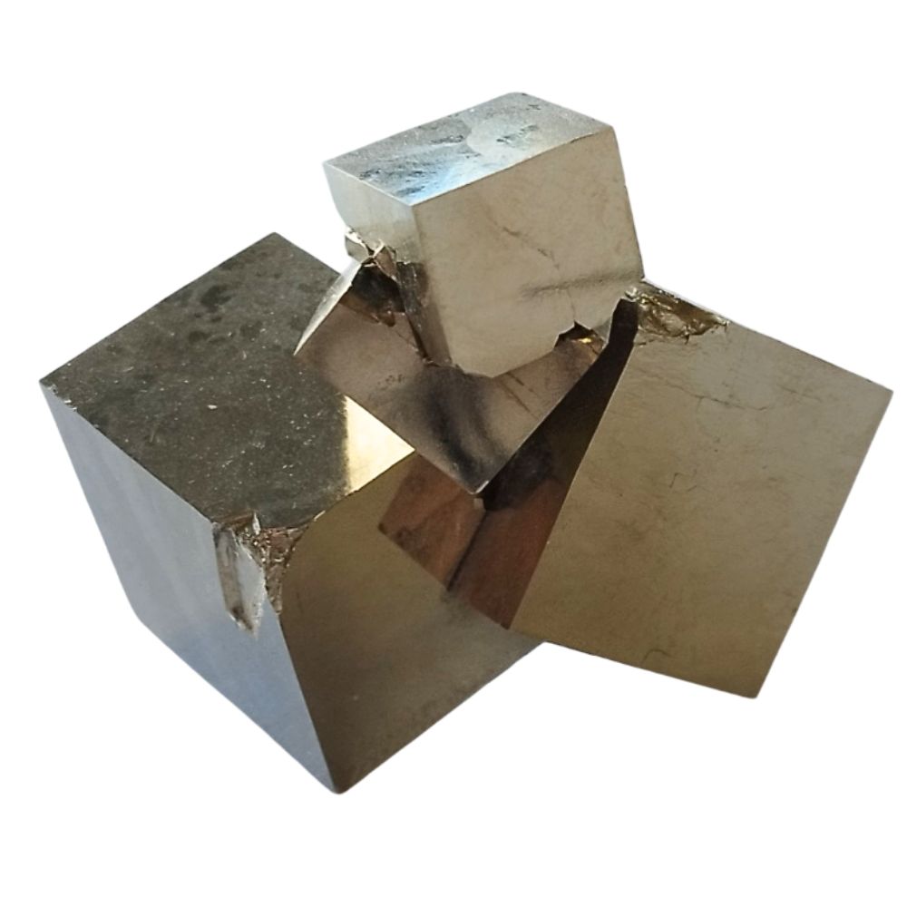 Lo que hace que estas piezas sean tan especiales es su formación como maclas: múltiples cristales individuales de pirita que han crecido interpenetrados en una relación geométrica definida, creando una estructura compleja y visualmente impactante. La disposición y la forma de estas maclas varían, lo que convierte cada pieza en un tesoro singular. Es el regalo perfecto para amantes de los minerales o una adición esencial para tu propia colección.