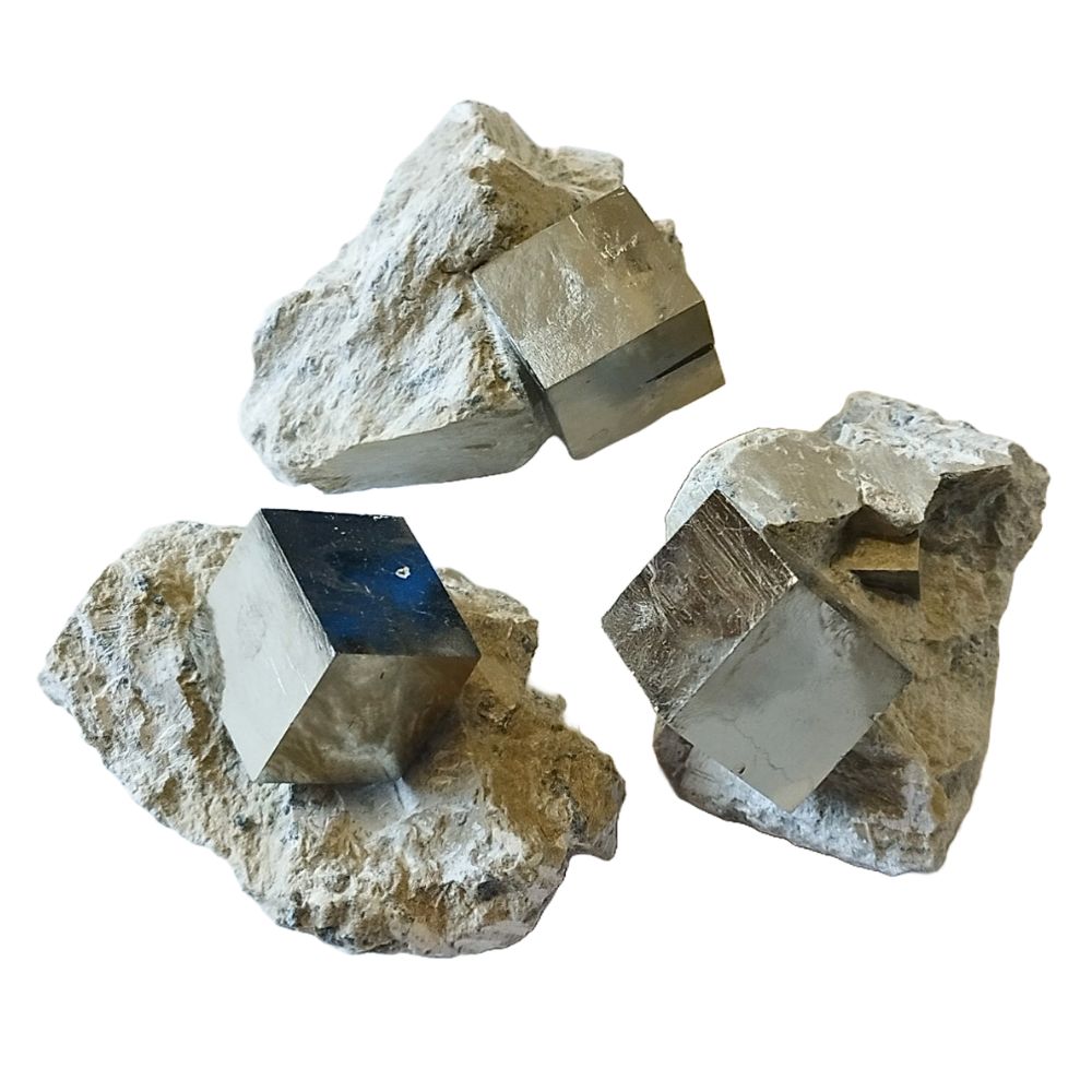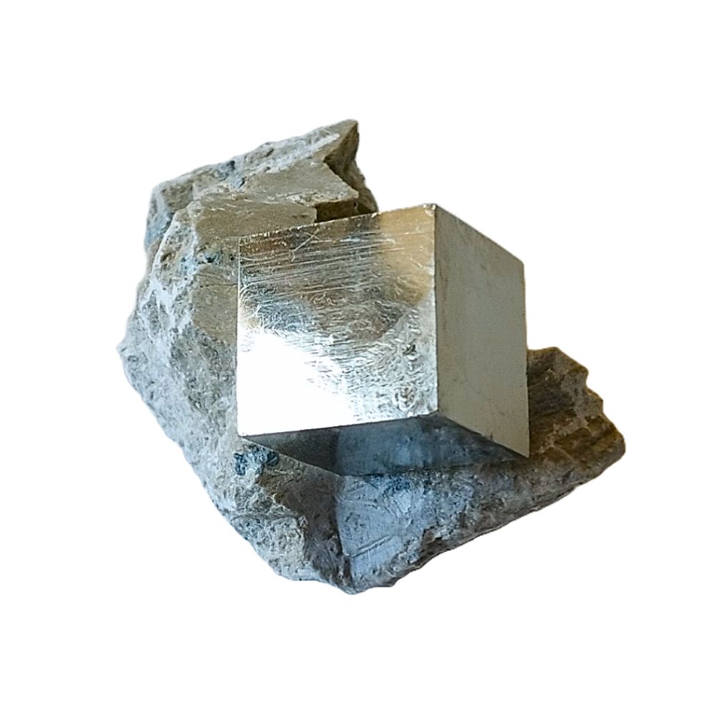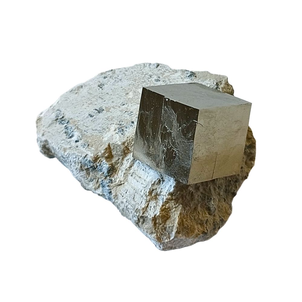 La Pirita en Matriz te ofrece cristales brillantes de pirita incrustados en su roca original. Es una pieza clave para cualquier colección, mostrando cómo la pirita se forma en la naturaleza.